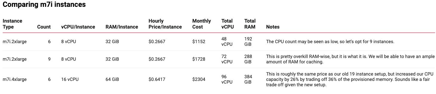 We didn't even consider Graviton instances, which are claimed to give 30-40% better cost-performance benefits.